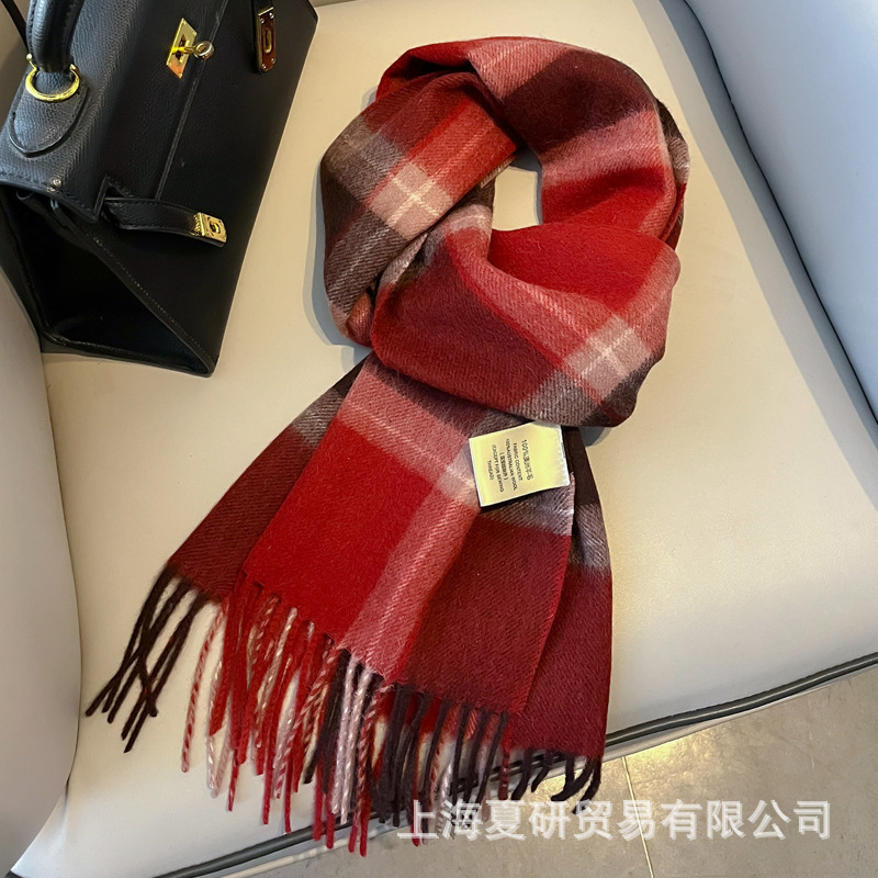 100% Australian Wool Shanghai Story Same Style Pure Wool Scarf for Women, Winter Fashion, Warm, Versatile, High-End Plaid