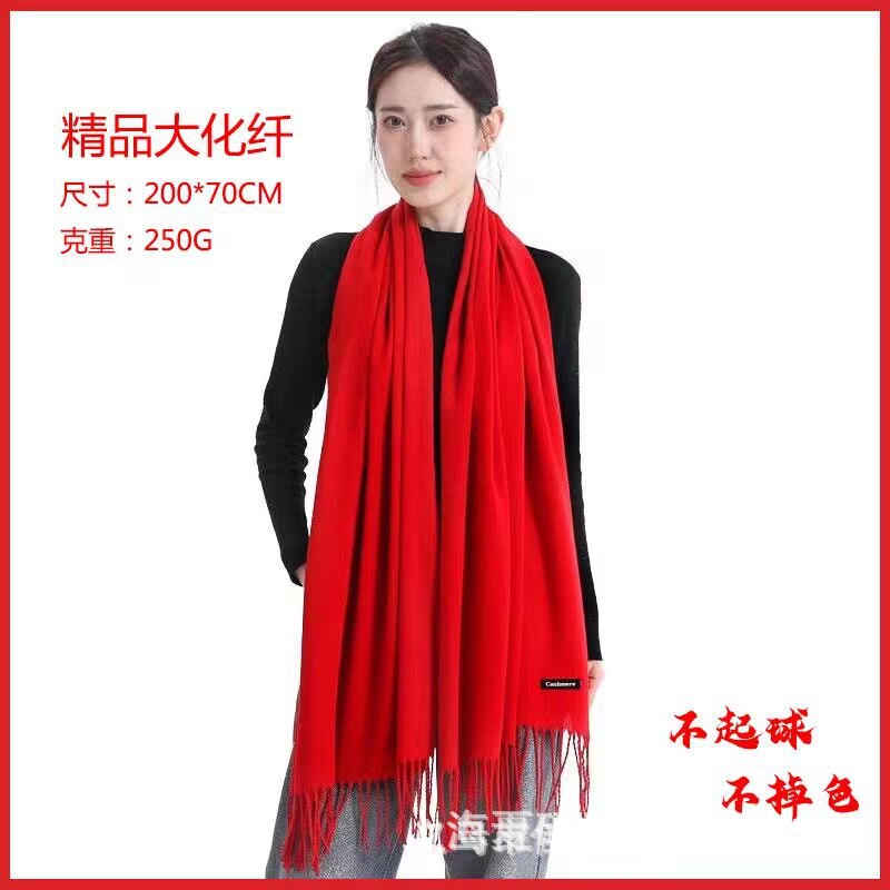 Chinese Red Cashmere Solid Color Printed Logo Embroidery Company Annual Meeting Gift Versatile Style New Year Chinese Red Cashmere