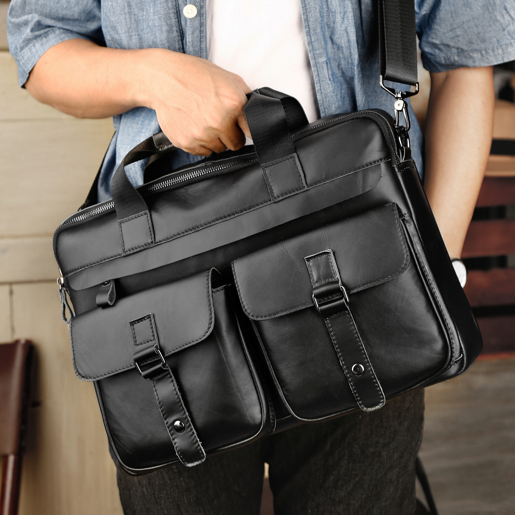 Cross-Border Men's Genuine Leather Briefcase Multifunctional Large Capacity Satchel 15.6inch Computer Bag Commuter Retro Crossbody Bag