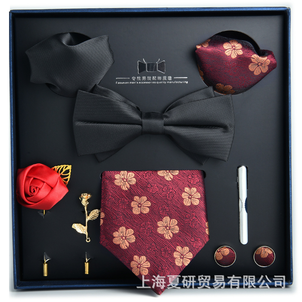 Men's Wedding 8-Piece Set: Hand-Tied Tie, Bow Tie, Cufflinks, Tie Clip, Exquisite Gift Box, Groom's High-End Fashion Luxury