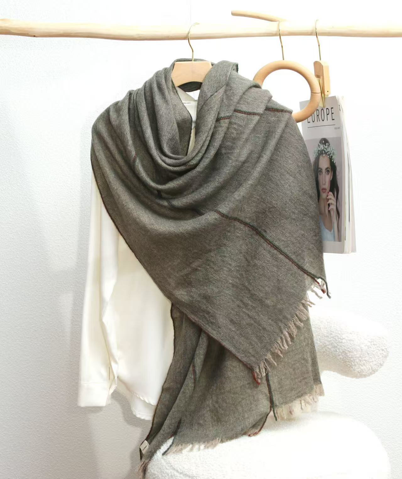 Pure Cashmere Scarf and Shawl Dual-Purpose Women's Autumn and Winter Warm Heavy-Threaded Color-Blocking Line Travel Sun Protection