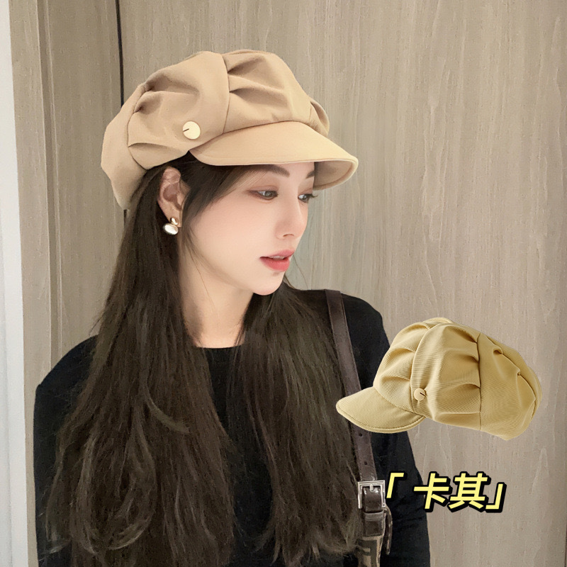 Women's Chic Retro Hats for Spring & Fall: Japanese-Style Black Beret, Cloud Octagon Cap | Face-Slimming Design